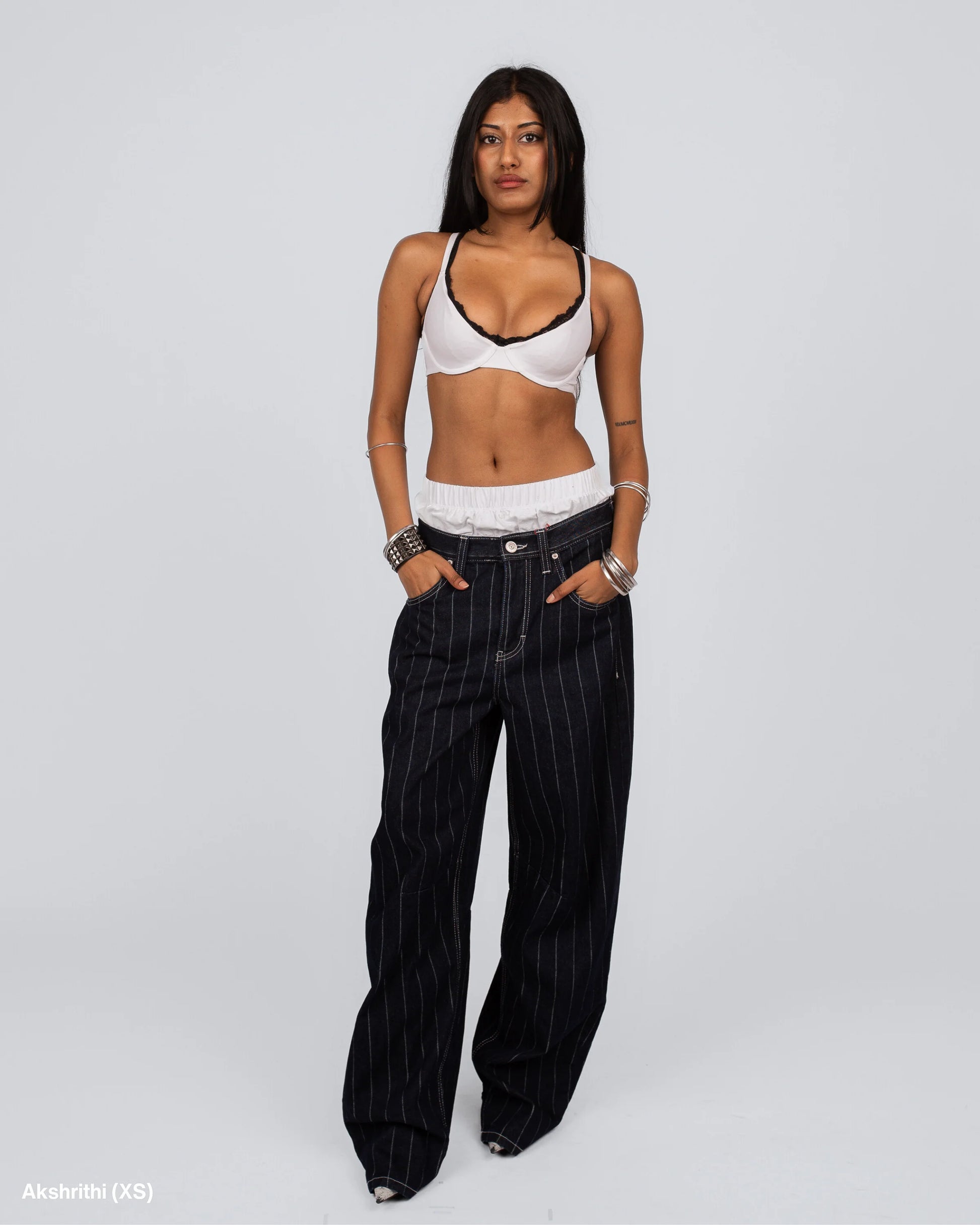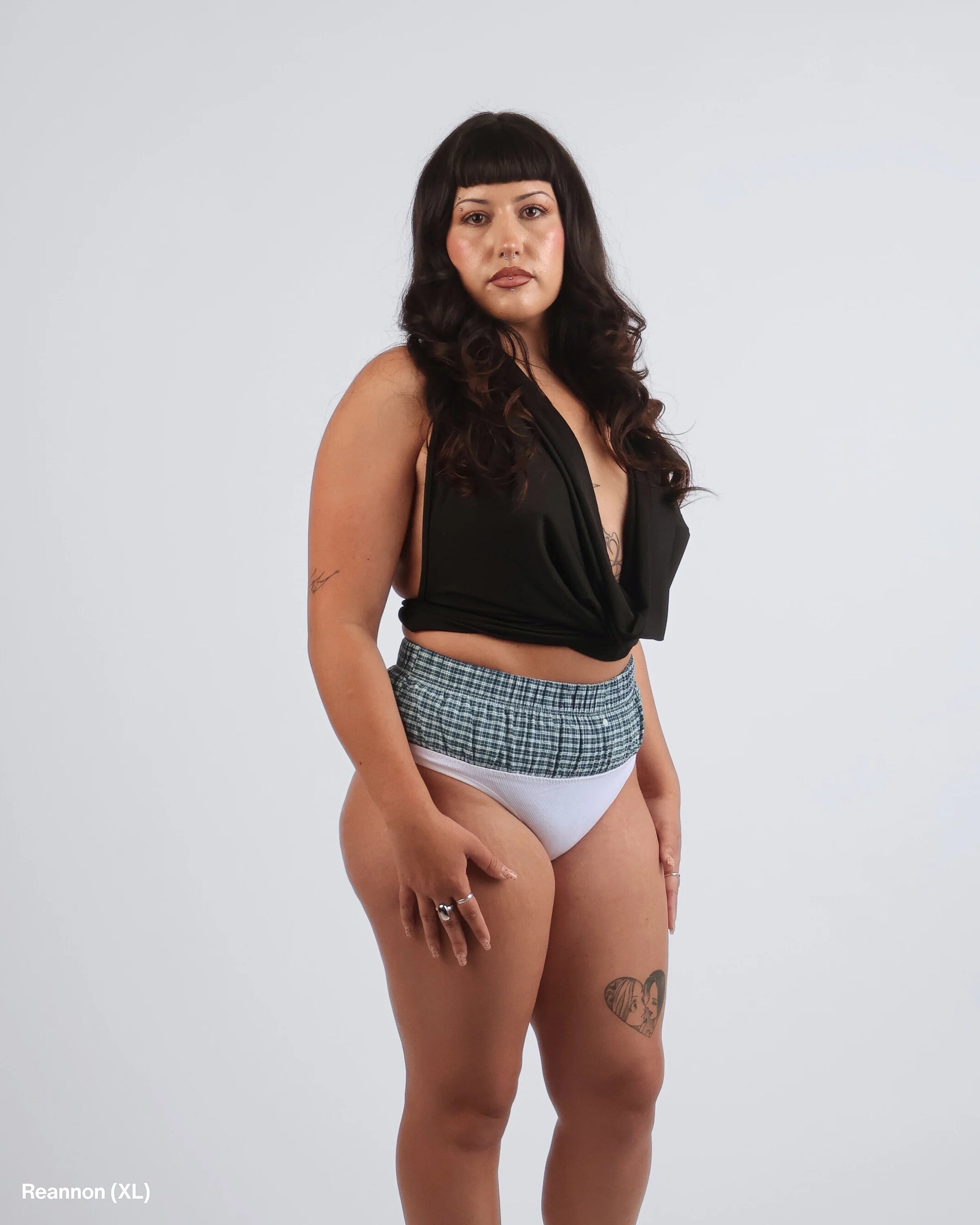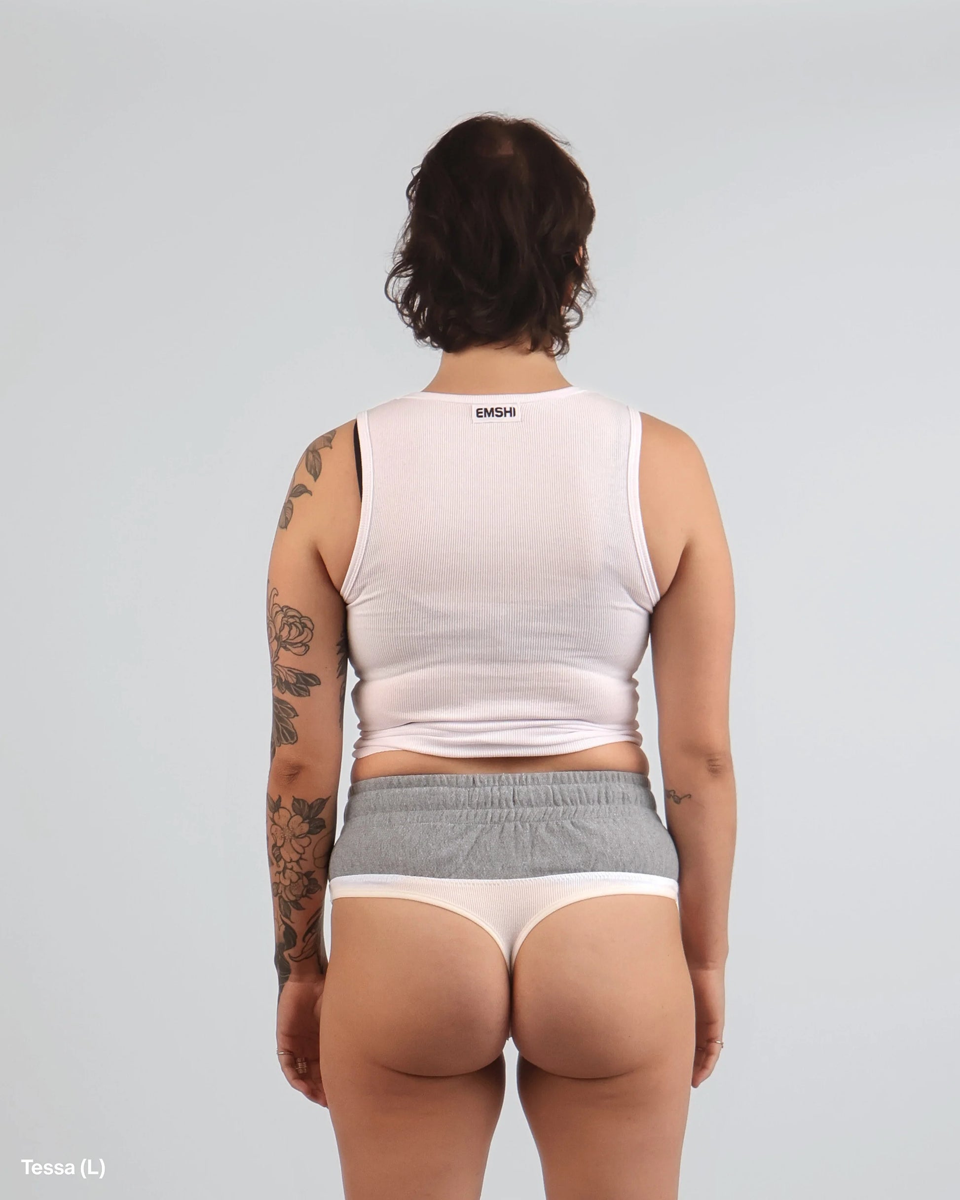 The thong, built in our signature rib knit, sits discreetly under bottoms of your choosing while the woven boxer waistband peeks through as an intentional style move. Soft, sculpting, and worn to be seen. This is your foundation piece for effortless layering.